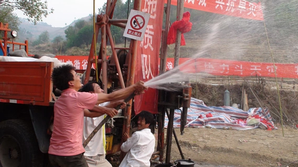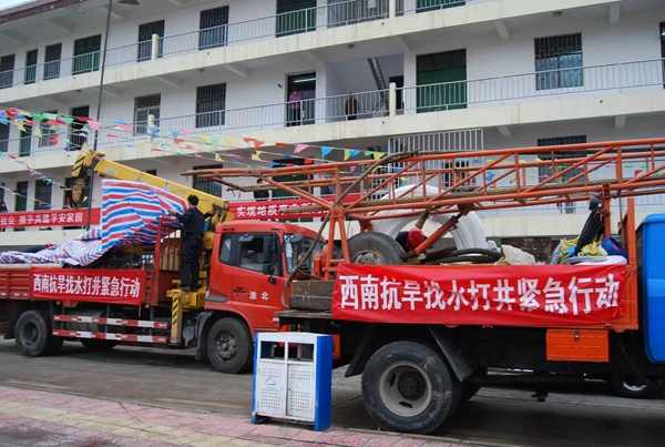 2010年初,百年大旱侵袭我国西南地区,325地质队奉命组织一支技术精干、装备先进的抗旱找水打井突击队,奔赴抗旱第一线,在旱区渡过了艰难而又令人振奋的45天,在多次遇到孔内坍塌、掉块、卡钻、漏水、不返泥浆等困难情况下,第一个成功打出水,实现钻探进尺488米,出水量达774立方,解决了80000人和牲畜的饮水问题,成功缔造“安徽第一井”,超前超额完成打井任务,赢得了国土资源部授予的“西南抗旱找水打井先进集体”称号。